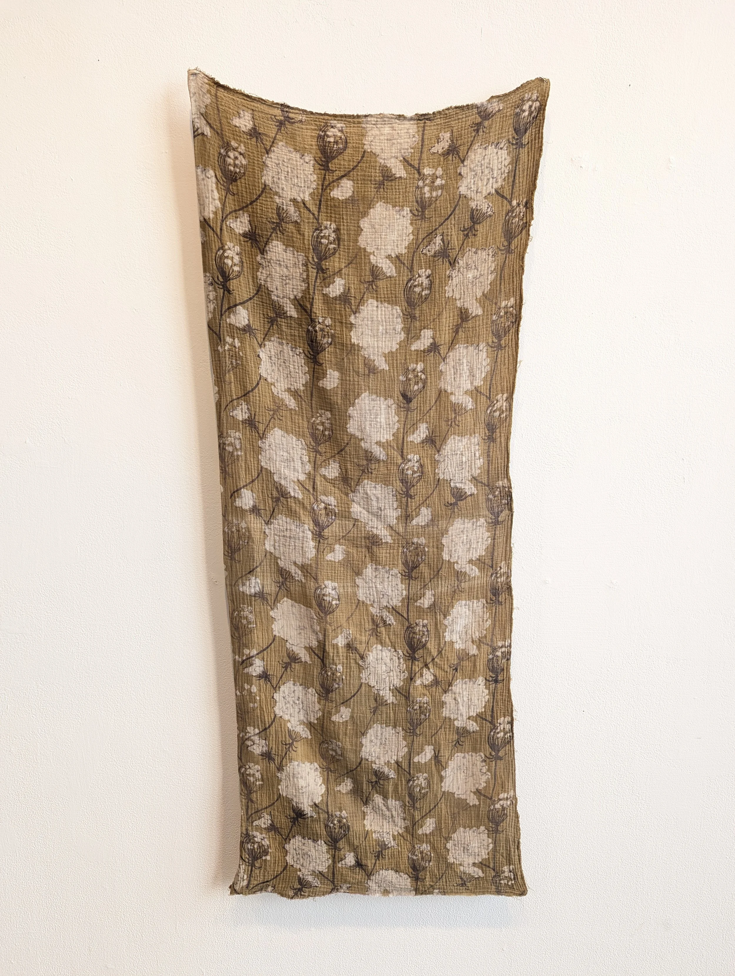 Through the rhythmic motion of weaving, printing, knitting, and other fabric-based techniques, my art becomes a meditative practice that connects me to both the past and the future. My practice is driven by a curiosity and awe of what we are capable of making with our own hands, through historical, predominantly women-led practices.